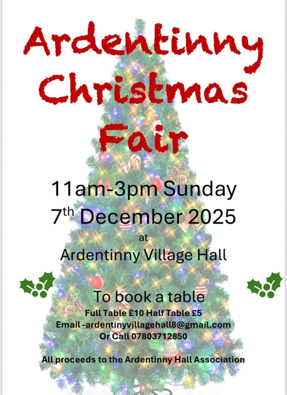 Anyone interested in a table at the Xmas fair on 7th December please get in touch with the hall committee it would be good to have it go ahead but we need numbers!- ardentinnyvillagehall8@gmail.com