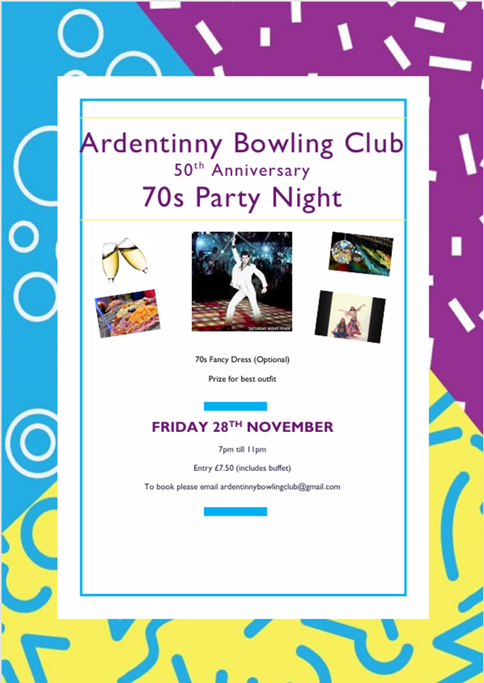 Ardentinny Bowling Club 70’s Party Friday 28th November